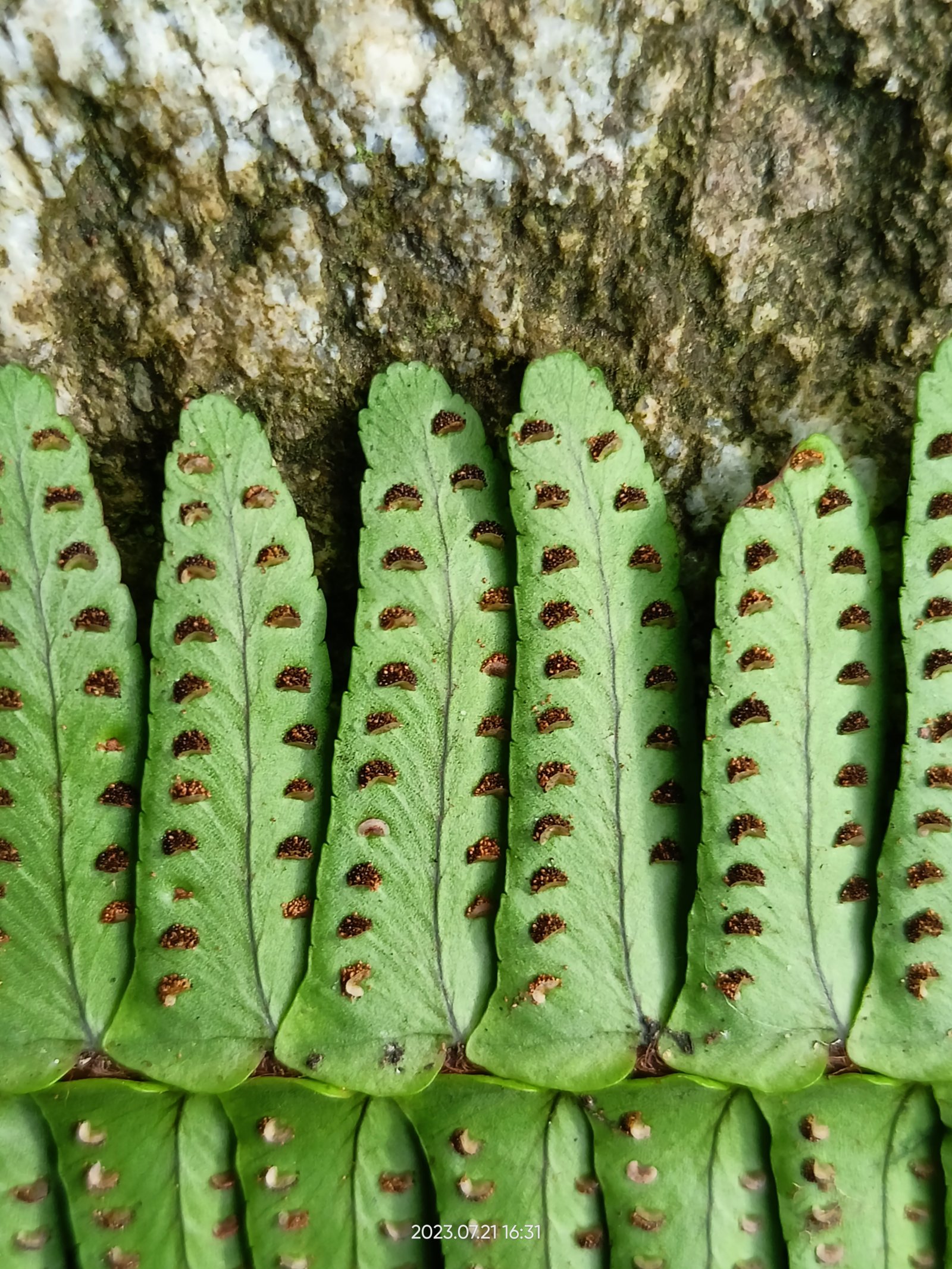 Nephrolepis cordifolia (Abaxial view of the pinnae)
